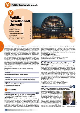 Die Kursangebote des Bereichs Politik, Gesellschaft, Umwelt ver- donnerstags 16.45 - 18.15 Uhr, Beginn 4. September