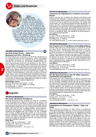 ken und evtl. ein kleiner Snack. Materialkostenin Höhe von 10,00 € Was passiert nach dem Fotografieren? In diesem Kurs lernen Sie,
